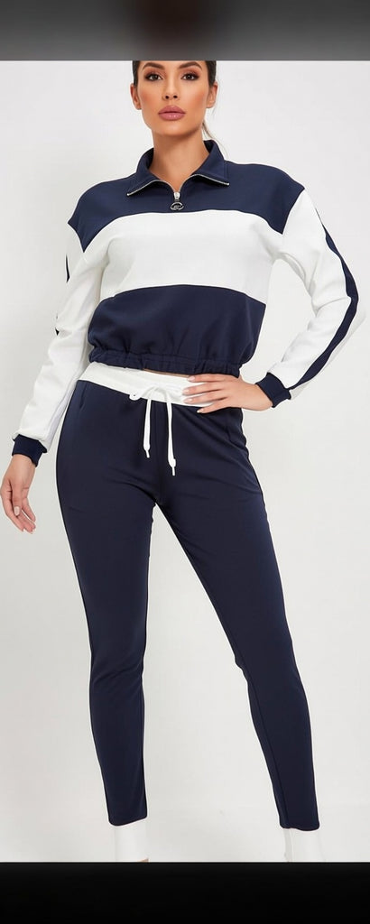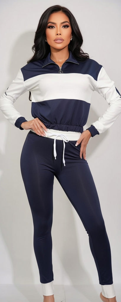 Elevate your active wardrobe with our two-piece color-block tracksuit. This set includes a sleek long-sleeve zip-up top with striking horizontal panels, paired with coordinating joggers featuring eye-catching side stripes. Designed with an elastic waistband and functional pockets, this outfit effortlessly combines style and comfort, making it versatile for casual occasions and leisurely activities. Feel confident and fashionable in this must-have athleisure set from MB FASHION - perfect for those who value both style and comfort!