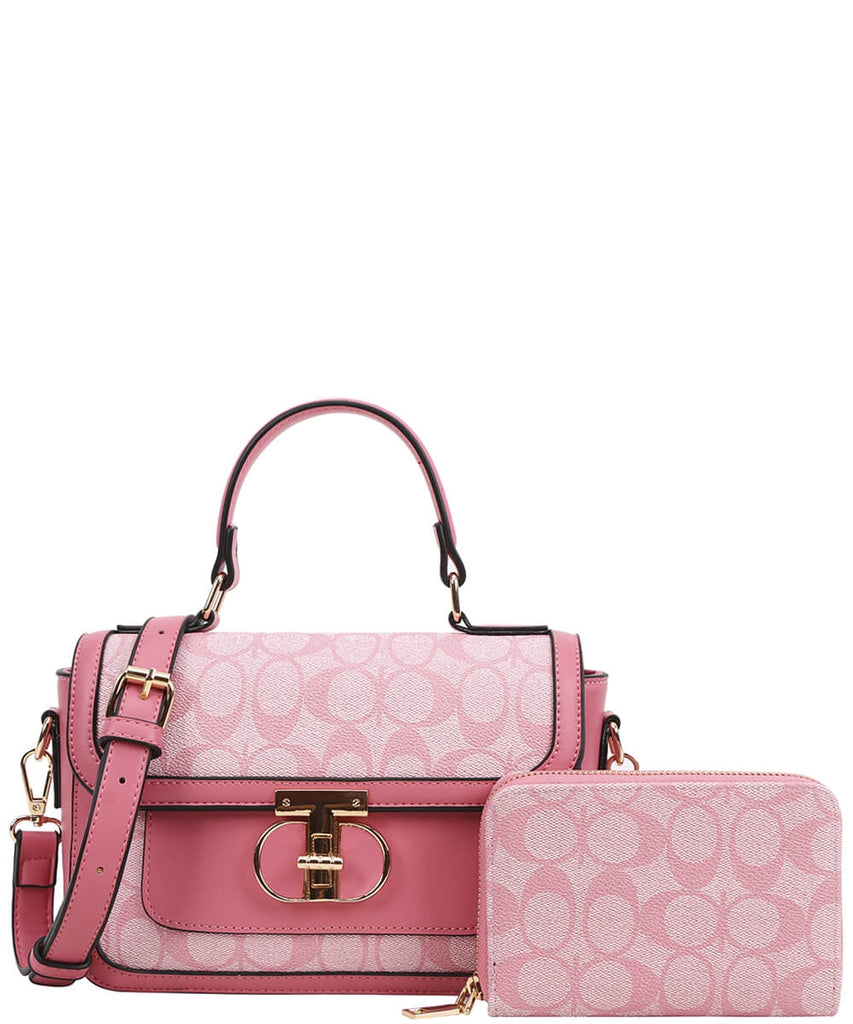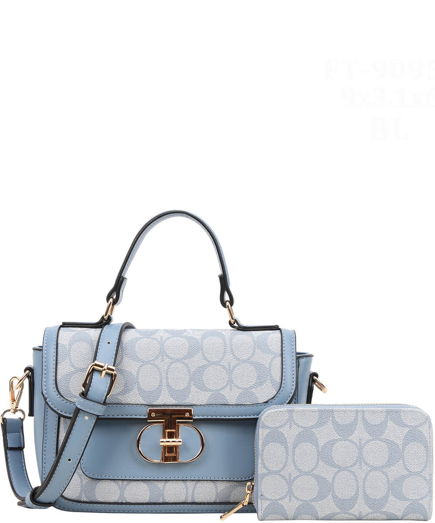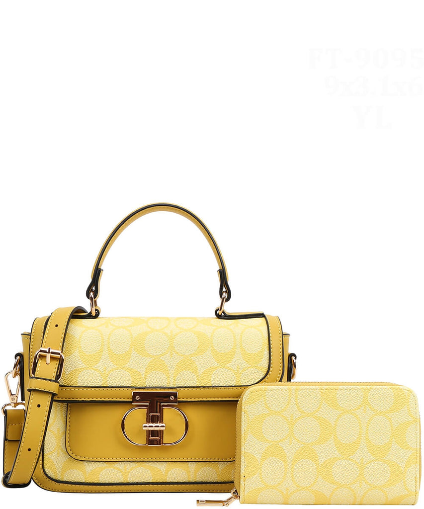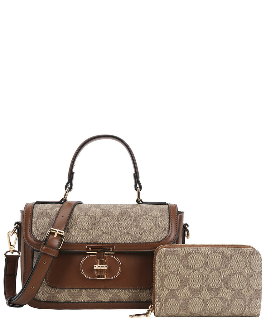 EVERY FASHION Signature Canvas Turnlock Flap Crossbody Bag with Matching Wallet 9095