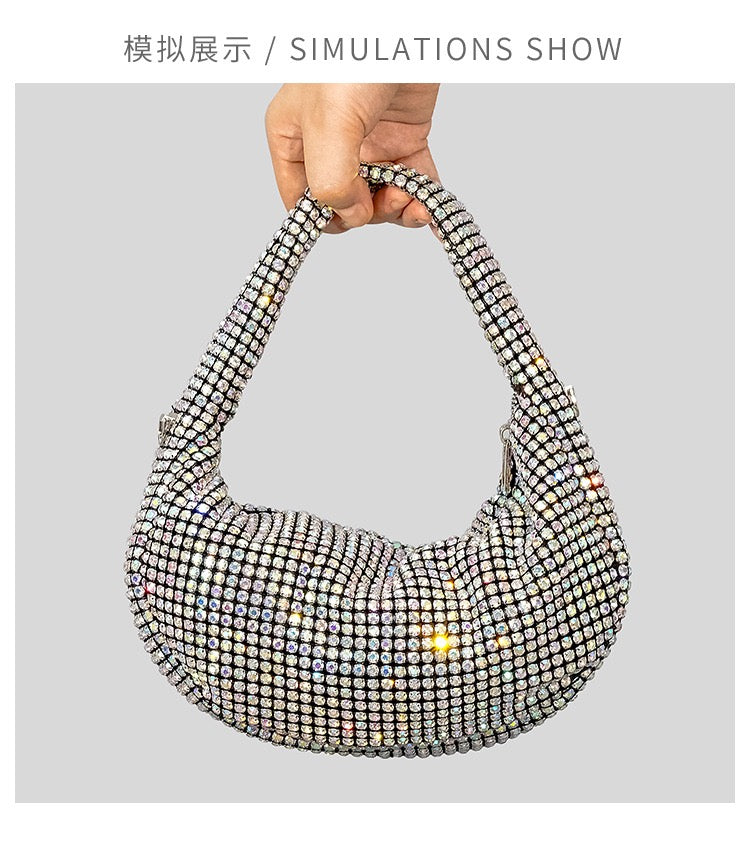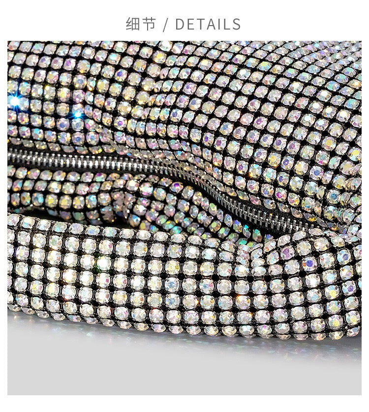 Crafted with high-quality rhinestones that catch the light from every angle, this bag offers a luxurious designer-inspired look at an affordable price – think Alexander Wang crystal mesh vibes but accessible for everyone. Compact yet spacious enough for your phone, wallet, lipstick, and keys, it includes a discreet zipper closure to keep essentials secure.