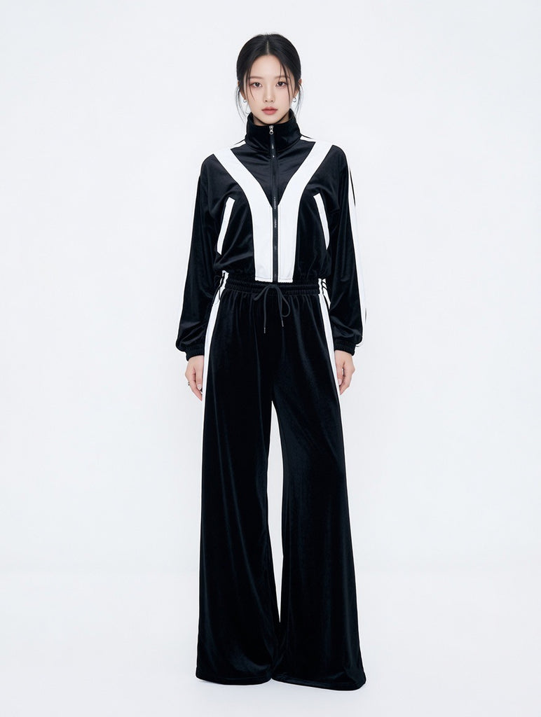 MB FASHION Wide Leg Tracksuit Set - Zip-Up Jacket & Athletic Lounge Pants 4071
