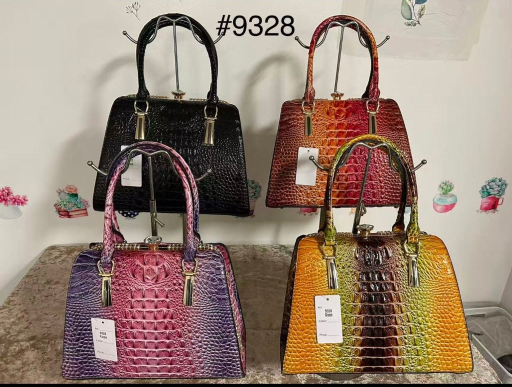 Every Fashion Croc Embossed Glossy Structured Handbag with Dual Handles 9328