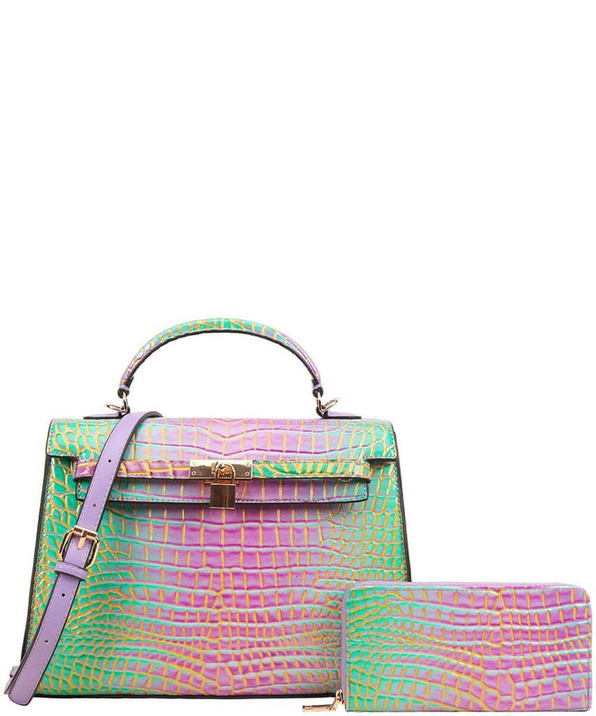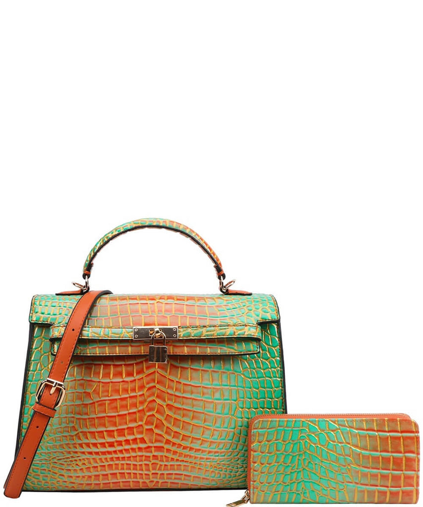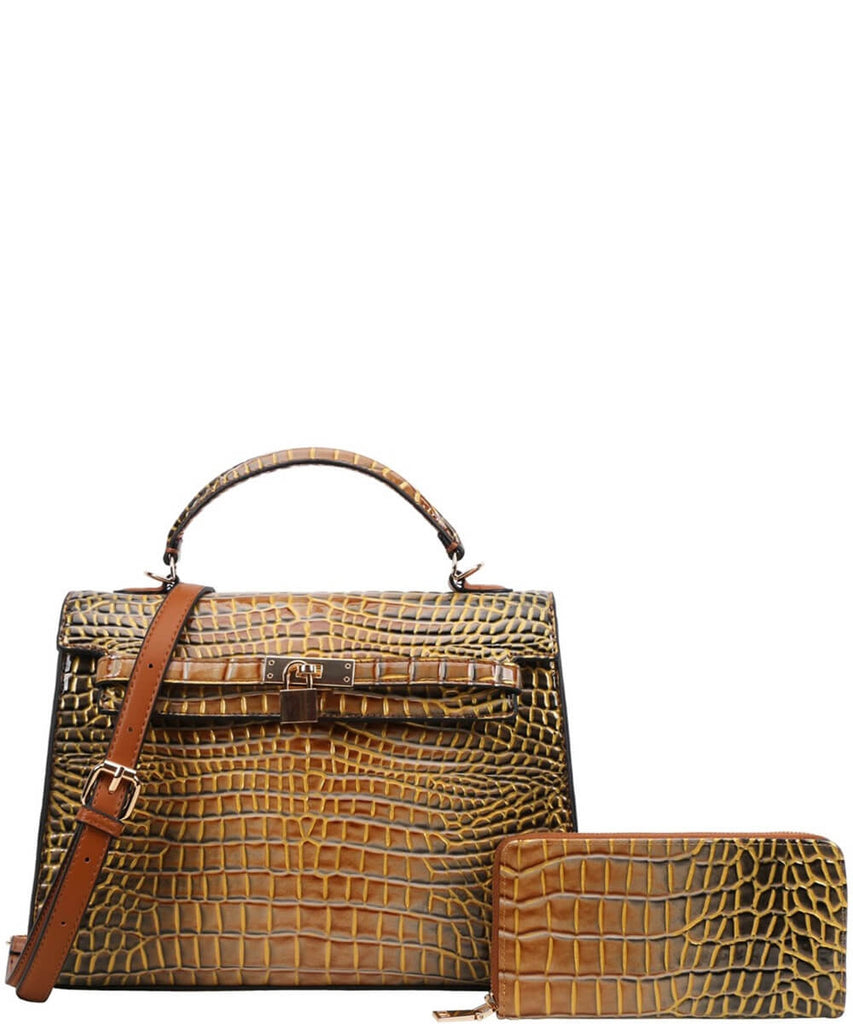 EVERY FASHION Croc Embossed Structured Handbag with Matching Wallet CJ-9168W