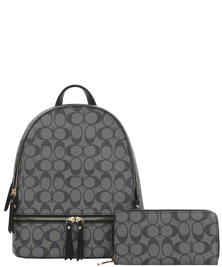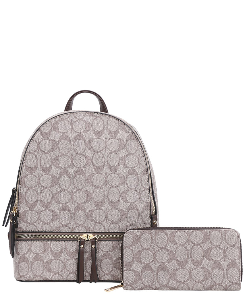 Upgrade your everyday style with this geometric print backpack set, designed for versatility and function. Featuring a structured silhouette with a roomy main compartment, it offers plenty of space for your essentials along with secure zipper closures and multiple pockets for organization. Adjustable shoulder straps provide comfort for daily wear, while the top handle adds easy grab-and-go convenience. Complete with a matching zip-around wallet, this set is perfect for school, work, travel, or casual outings—combining modern fashion with practical utility.