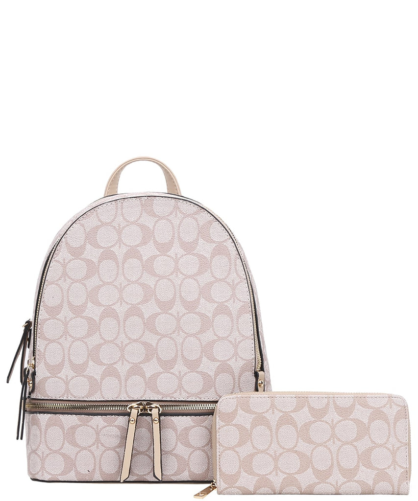 EVERY FASHION Geometric Print Backpack with Matching Wallet 008-7285W