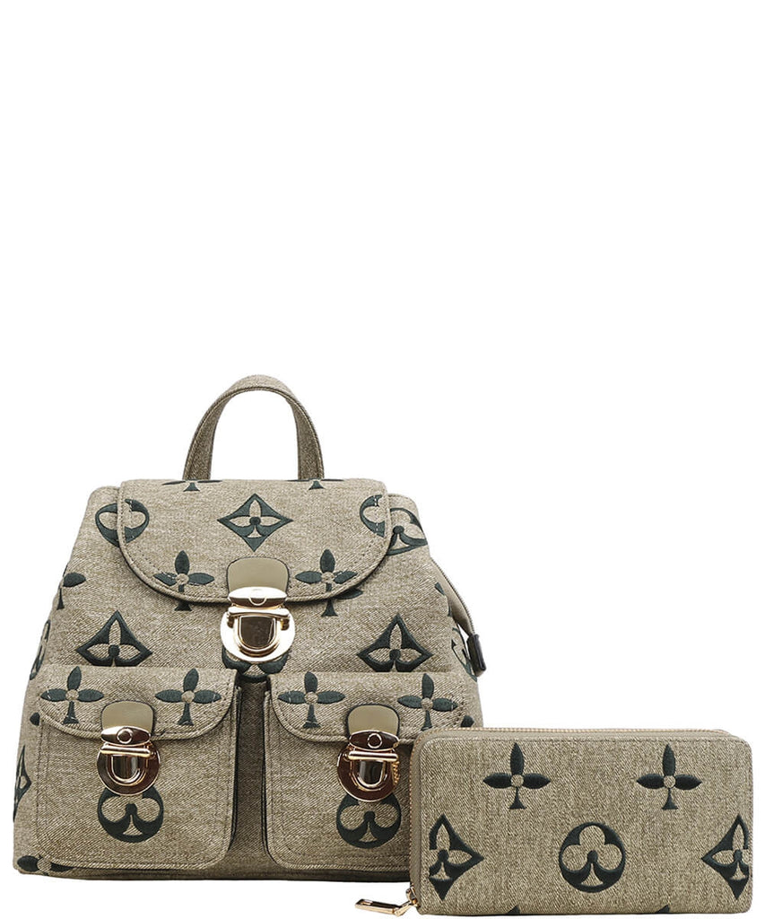 EVERY FASHION Patterned Backpack with Matching Wallet Set 3C1-1140W