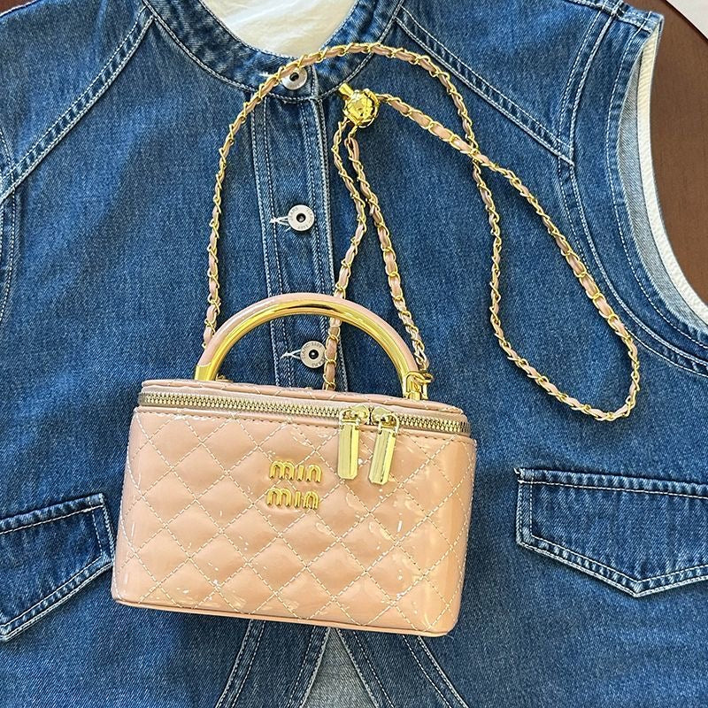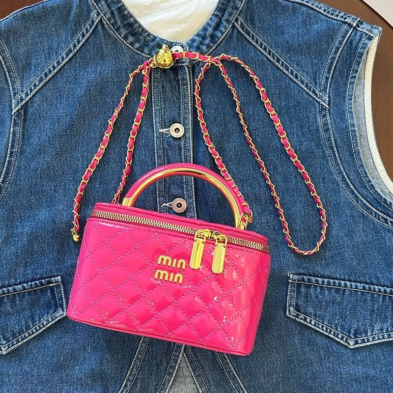 Finished with metallic accents and the signature “min min” detail on the front, this handbag is perfect for those who love fashion-forward accessories that stand out.