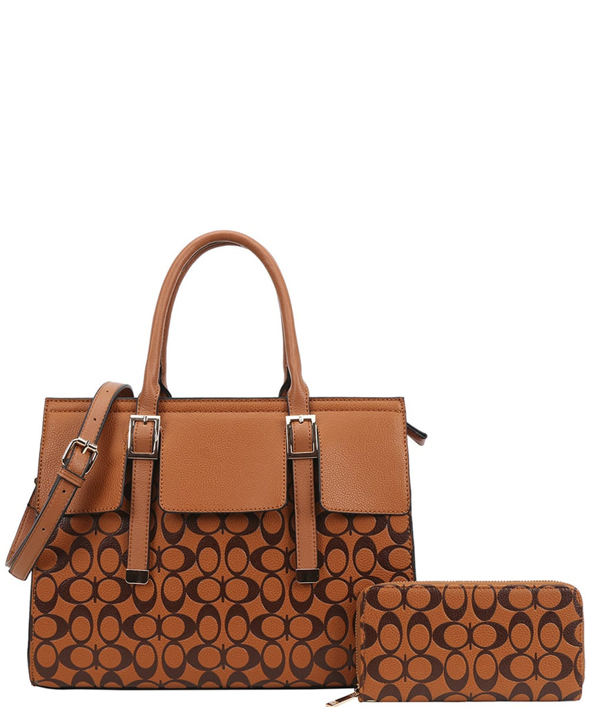 EVERY FASHION Structured Pattern Tote Bag with Matching Zip Wallet DP-9151-W