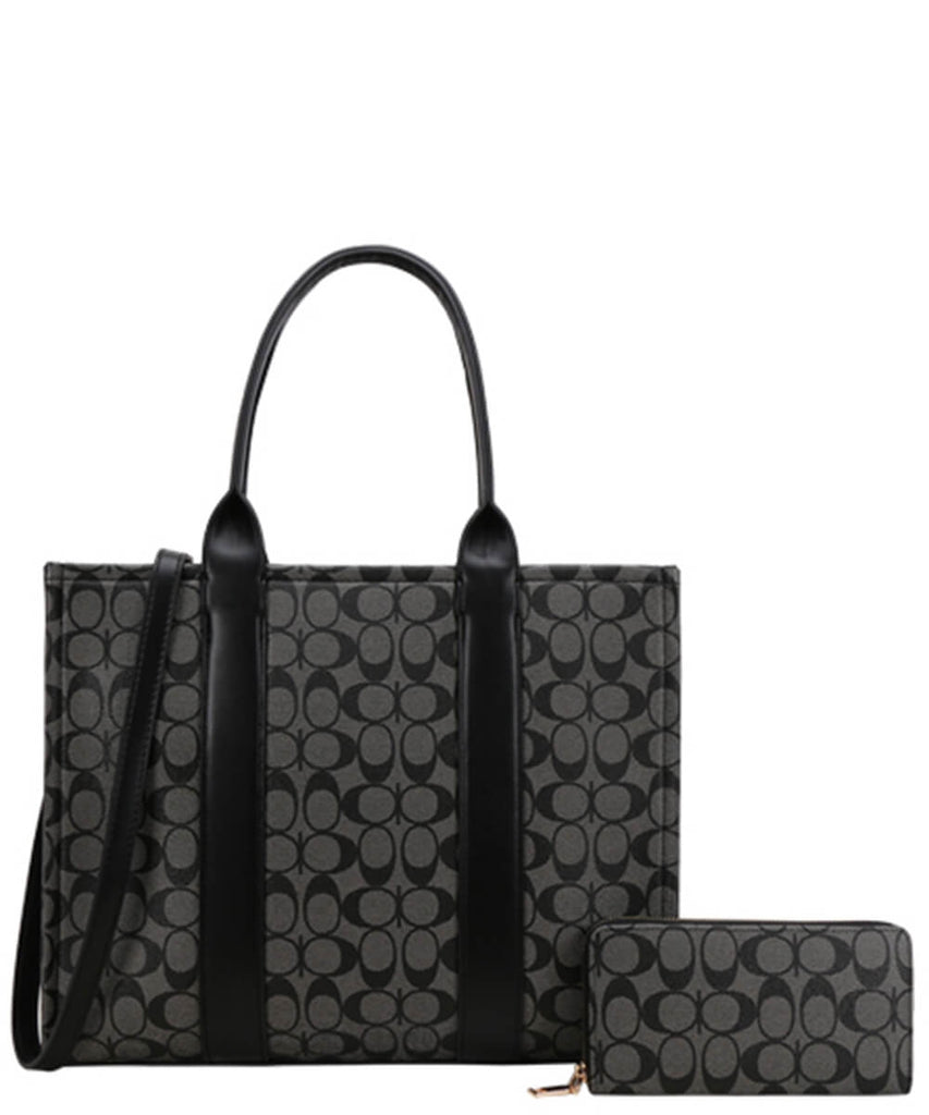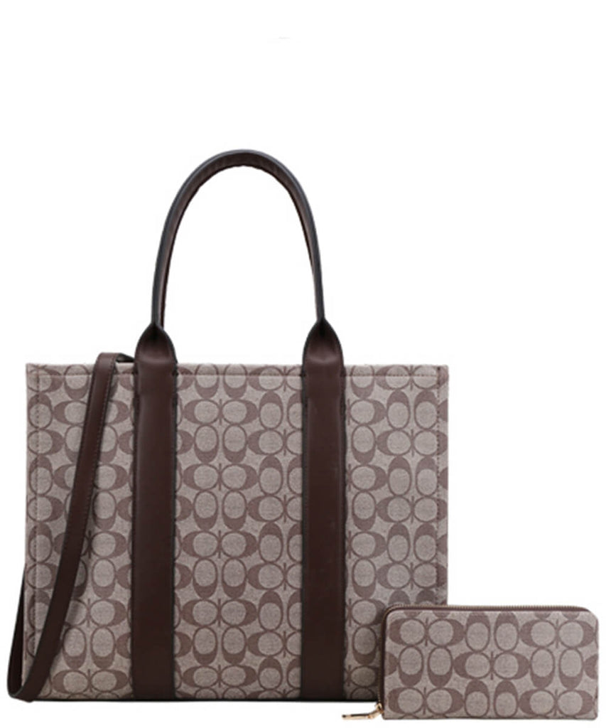 EVERY FASHION Structured Tote Bag with Matching Zip-Around Wallet FT-9145W