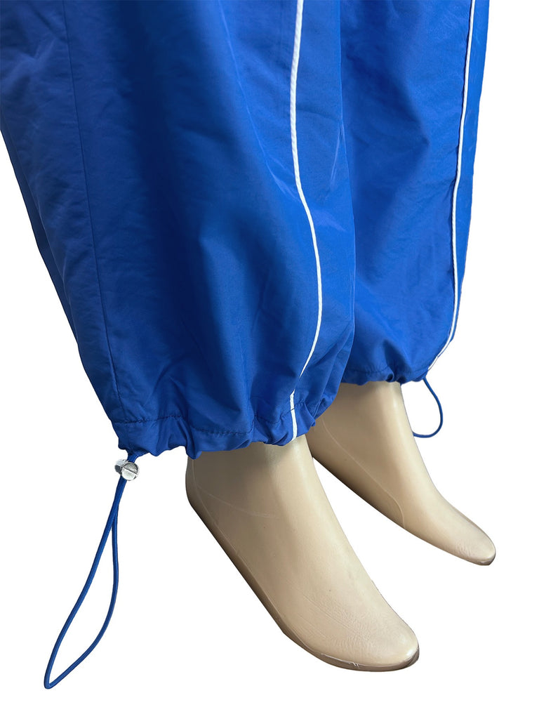 Crafted from lightweight, wind-resistant fabric, this outfit is perfect for on-the-go days or casual streetwear looks. The piping detail adds a sleek, sporty finish, while adjustable drawstrings at the hem and ankles let you customize your silhouette.