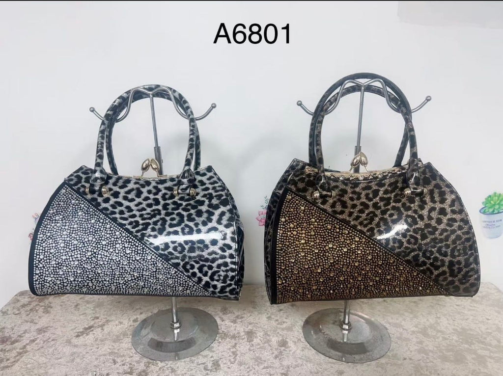 Every Fashion Glossy Animal Print Structured Handbag 6801